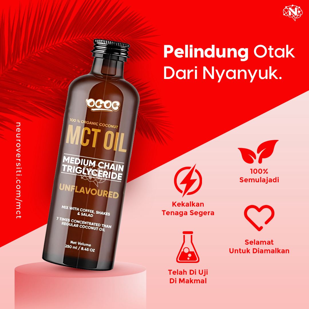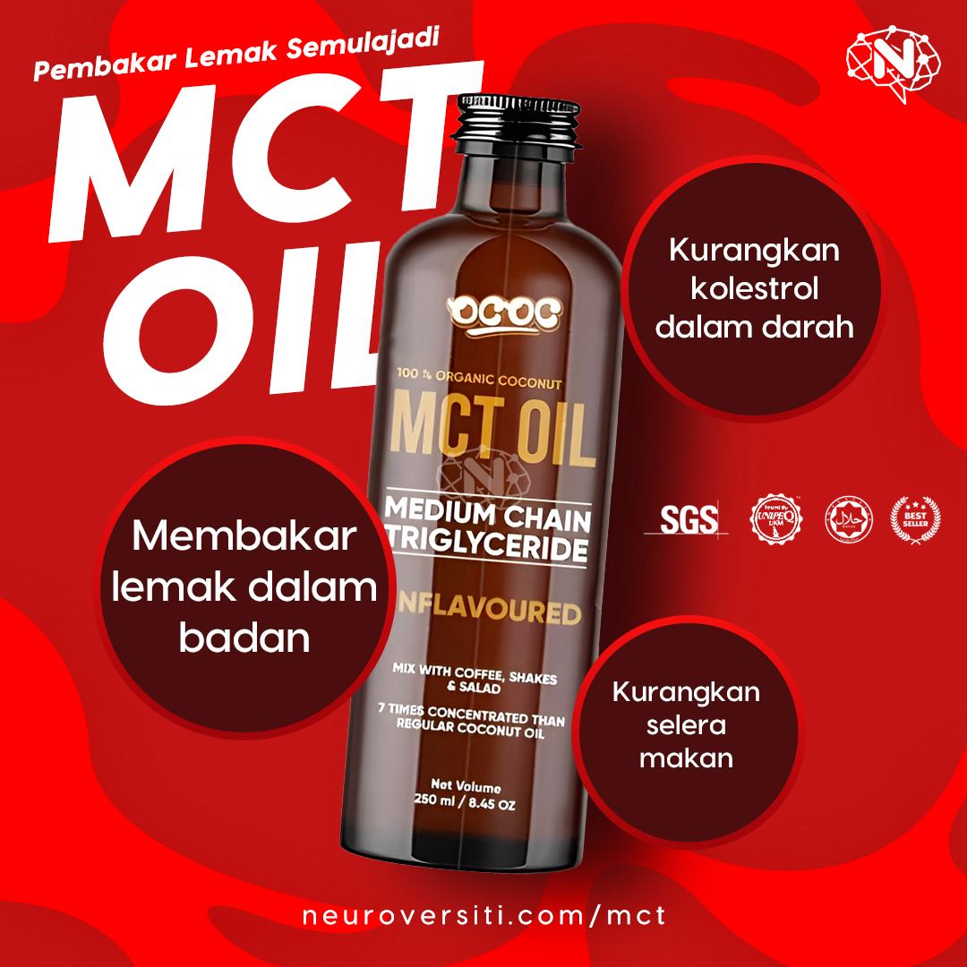 MCT Oil ialah ekstrak dari kelapa berkomposisi dari Asid Kaprilik (C8) dan Asid Kaprik (C10).