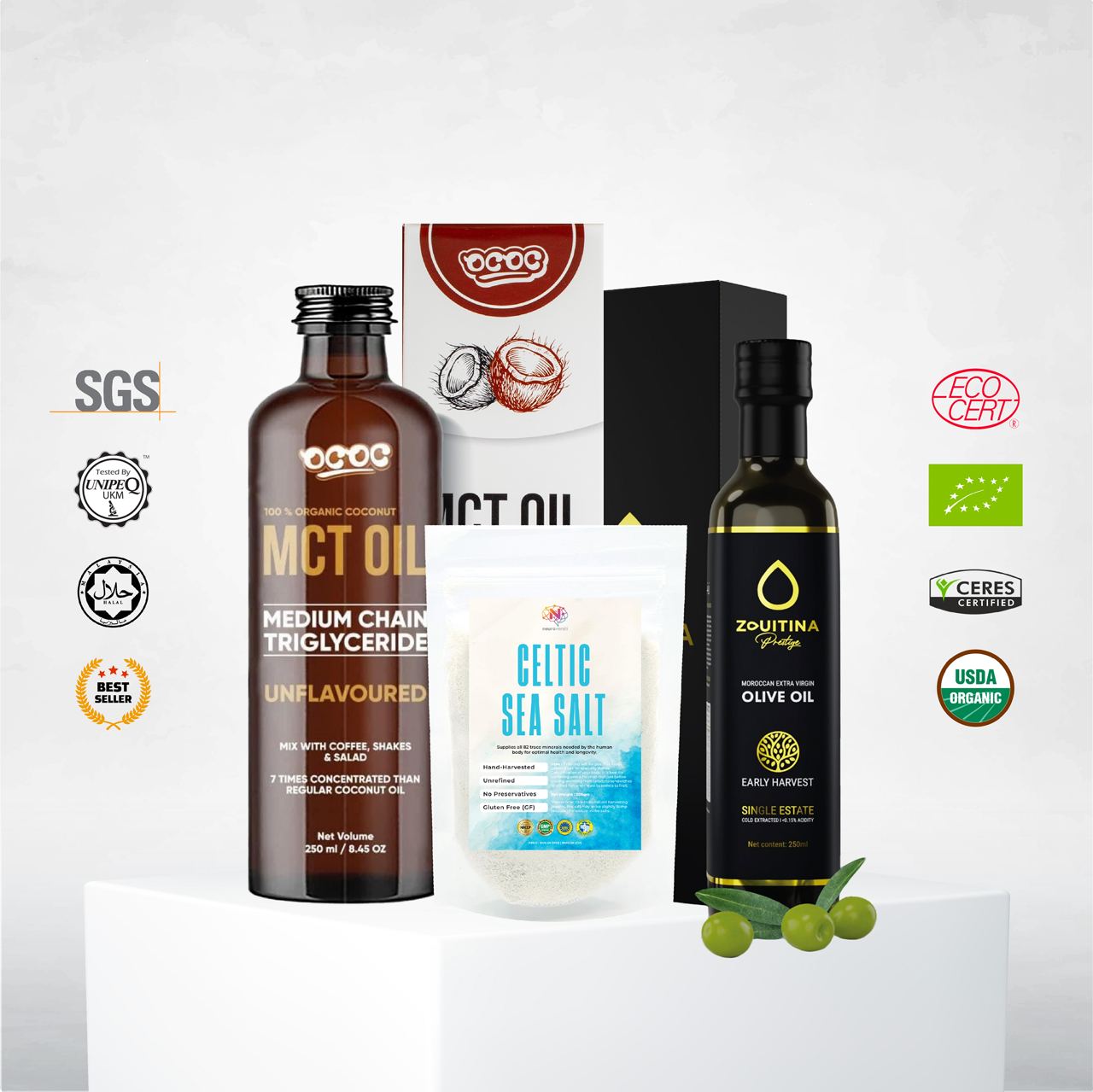 Amalkan setiap hari, 1 sudu MCT,1 Sudu Zouitina, dan secubit Celtic Sea Salt, untuk kesan lebih baik.